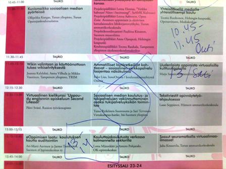Eilen kuljin ITK:ssa kunnon seminaarivieraan tapaan reppu selässä, läppäri repussa ja ohjelma kädessä. Tänään olin kokonaan mobiili: otin vain kännykän taskuun. Janssonin Mervin vinkistä digitoin myös etenemissuunnitelmani.