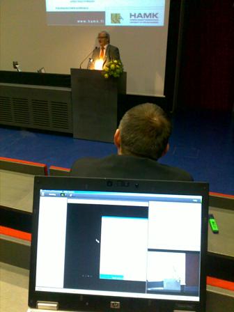 HAMKin laadunvarmistusjärjestelmän auditoinnin purkutilaisuuteen tänään iltapäivällä oli mahdollisuus osallistua paitsi Hämeenlinnassa myös verkossa. Verkkokokousjärjestemä Adobe Connectiin perustettiin oma huone tilaisuutta varten, ja sitä kautta sessioon liittyi kymmenkunta ihmistä eri toimipaikoista.