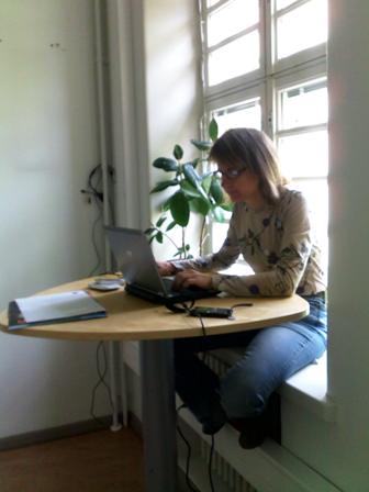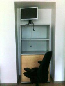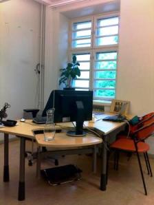 Työpöytä: Heitin roskiin tarpeettomat tarralaput. Laitoin kynät kynäpurkkiin. Vein kahvikupit ja vesituopit tiskikoneeseen. Laitoin silmälasit koteloon. Järjestelin sekä työ- että kotipuhelimen kohtisuoraan pöydänreunaa nähden. Puristin tuubista viimeiset rasvat käsiini ja heitin tyhjän putkilon roskiin.